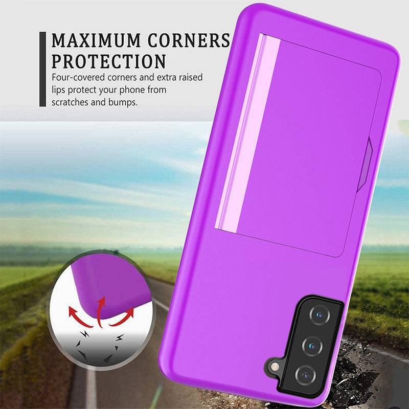 Armor Protective Card Holder Case for Samsung S21 FE(5G) With 2-Pack Screen Protectors