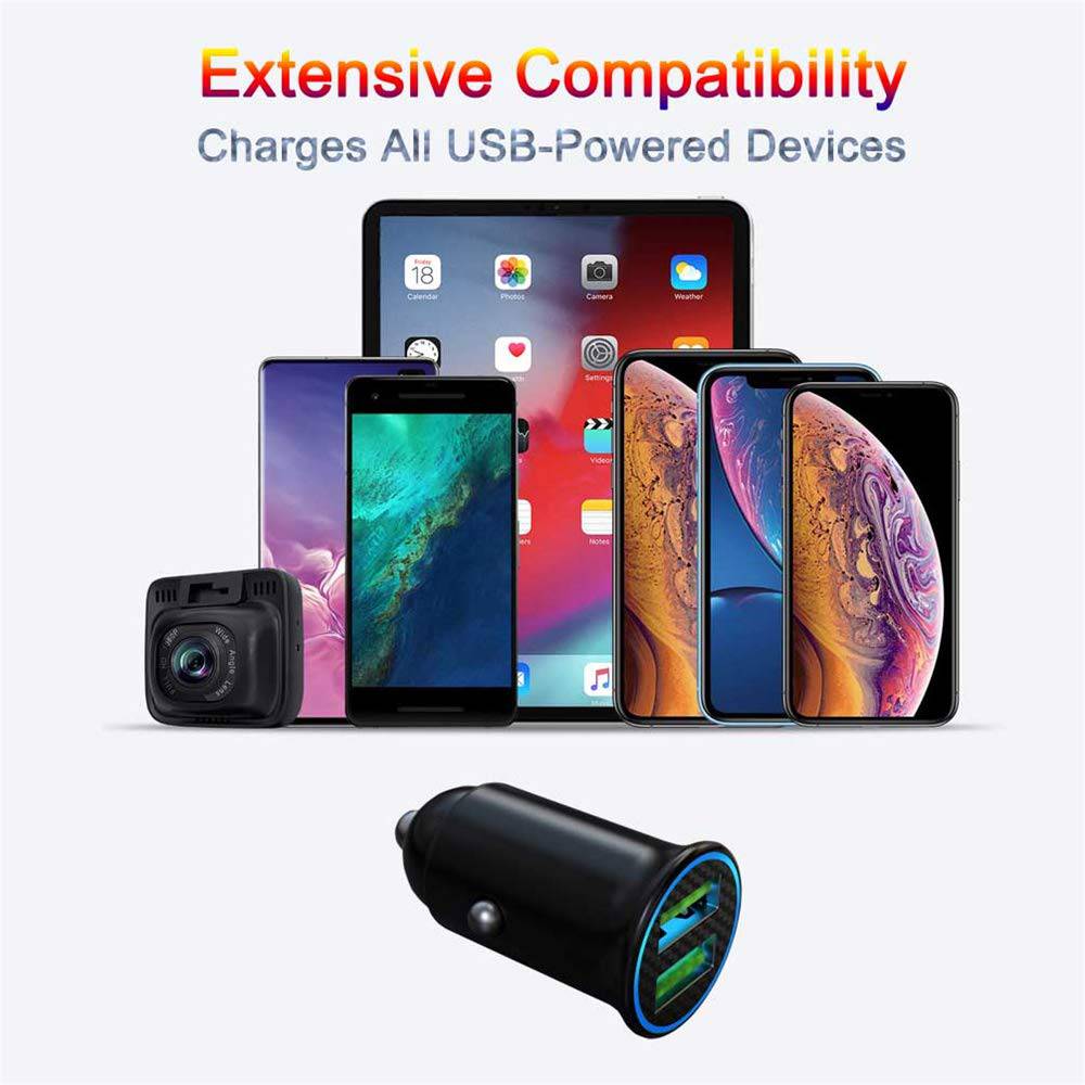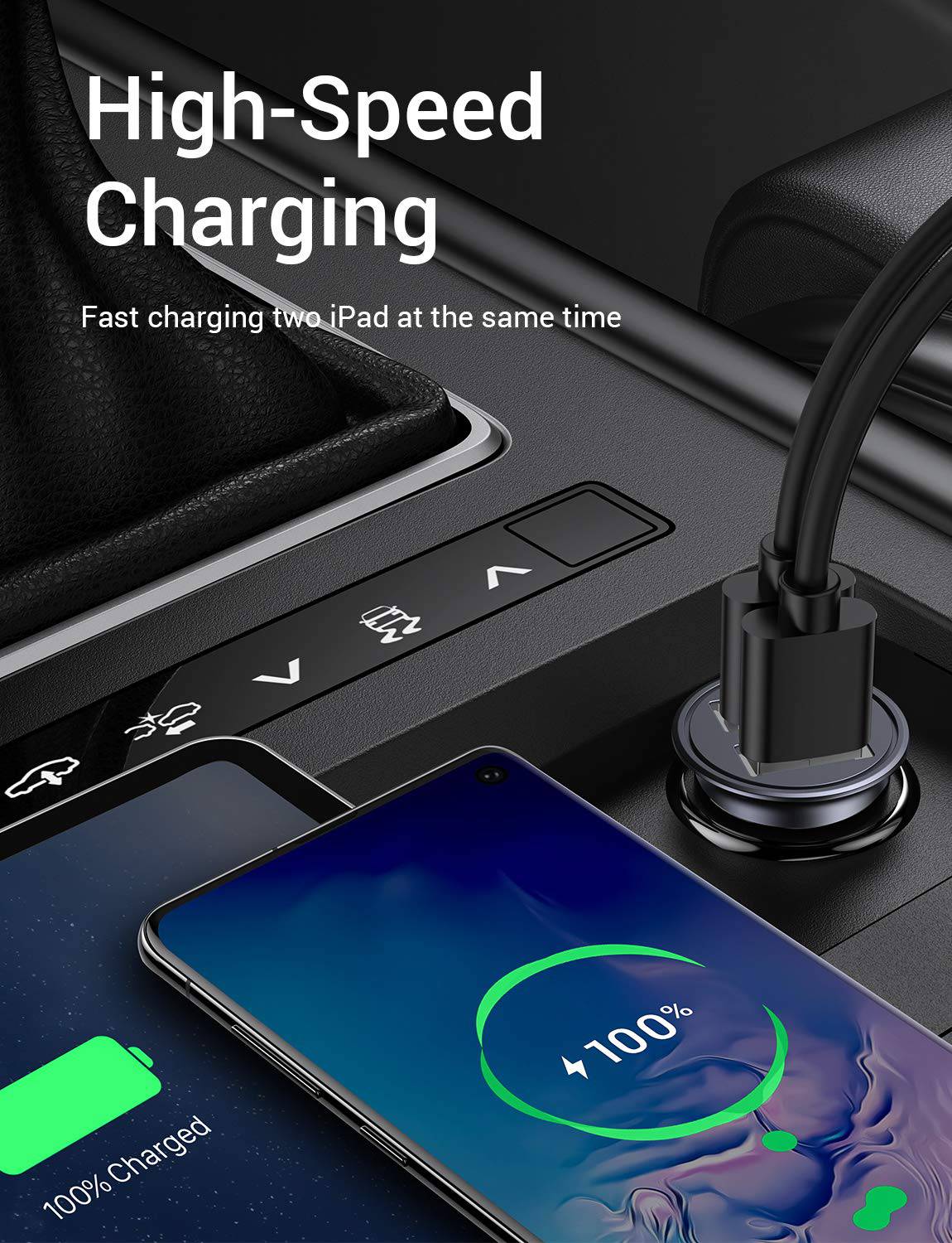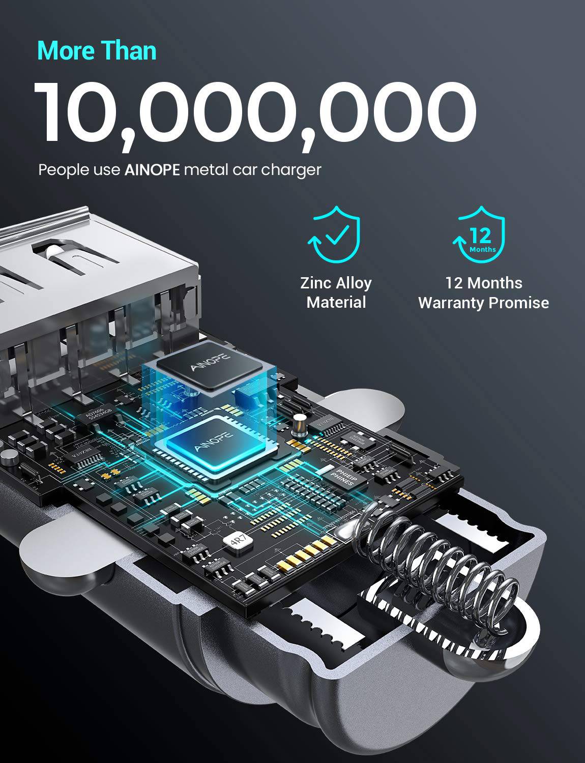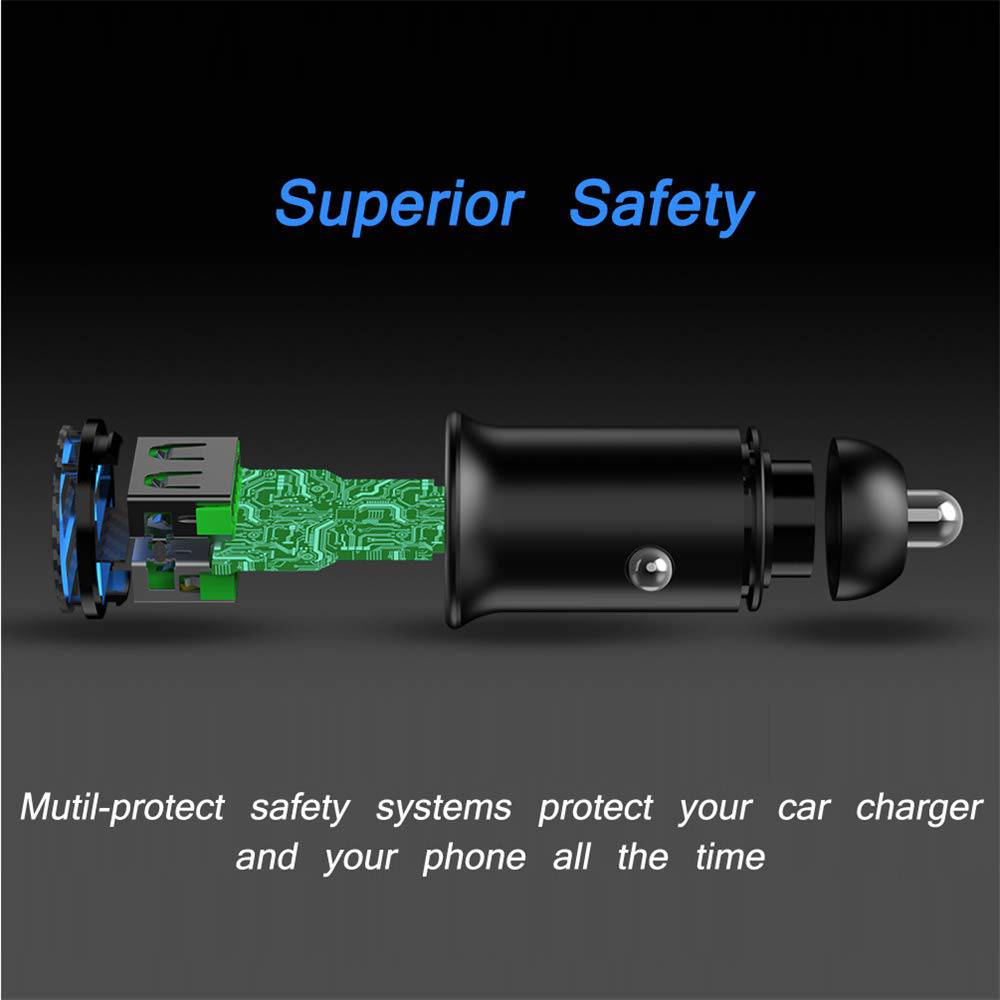 ✅ALL METAL MATEIAL: The full zinc alloy body features scratch resistant, nice in design and long-lasting in use. High quality material let your usb car charger always look like new. Upgrade metal car charger will not be overheating at high temperatures, which is safer than plastic one.