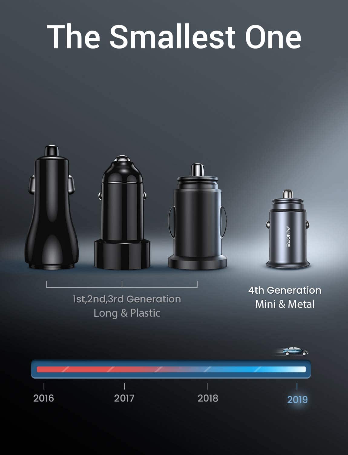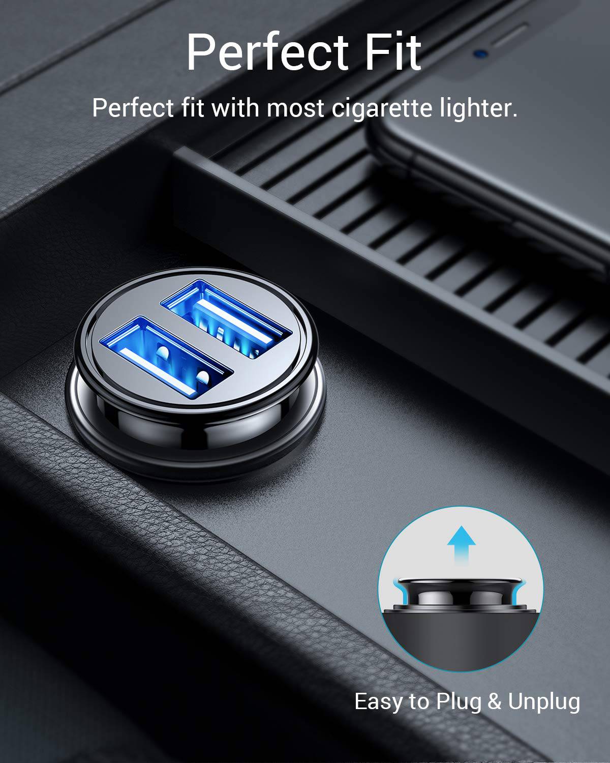 ✅COMPACT SIZE: With tiny thumb-sized(Size: 1.7inch*0.9inch) body, this mini car charger adapter perfectly blends with most car cigarette lighter and sits comfortably with the edge of the outlet. Our smallest usb car charger yet; it´s portable and you can take everywhere.