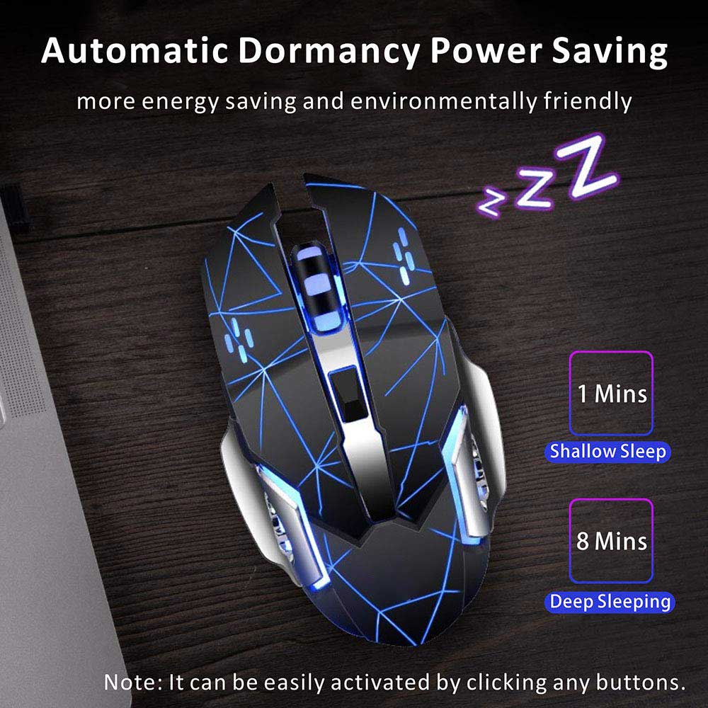 - Auto-sleeping LED Light: The mouse will be automatically sleeping and the LED light shut off for over 8 minutes of inactivity, it will turn to power saving mode to save energy. You can click any button to wake it up.