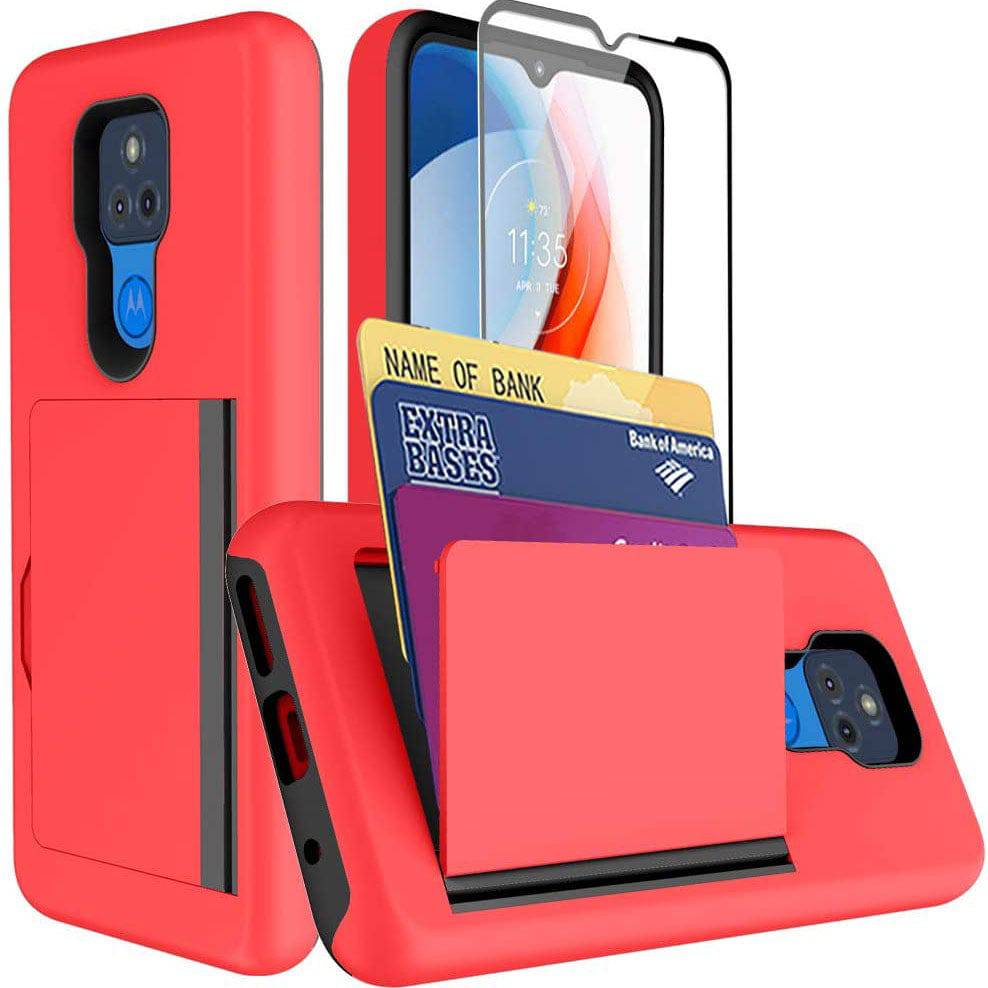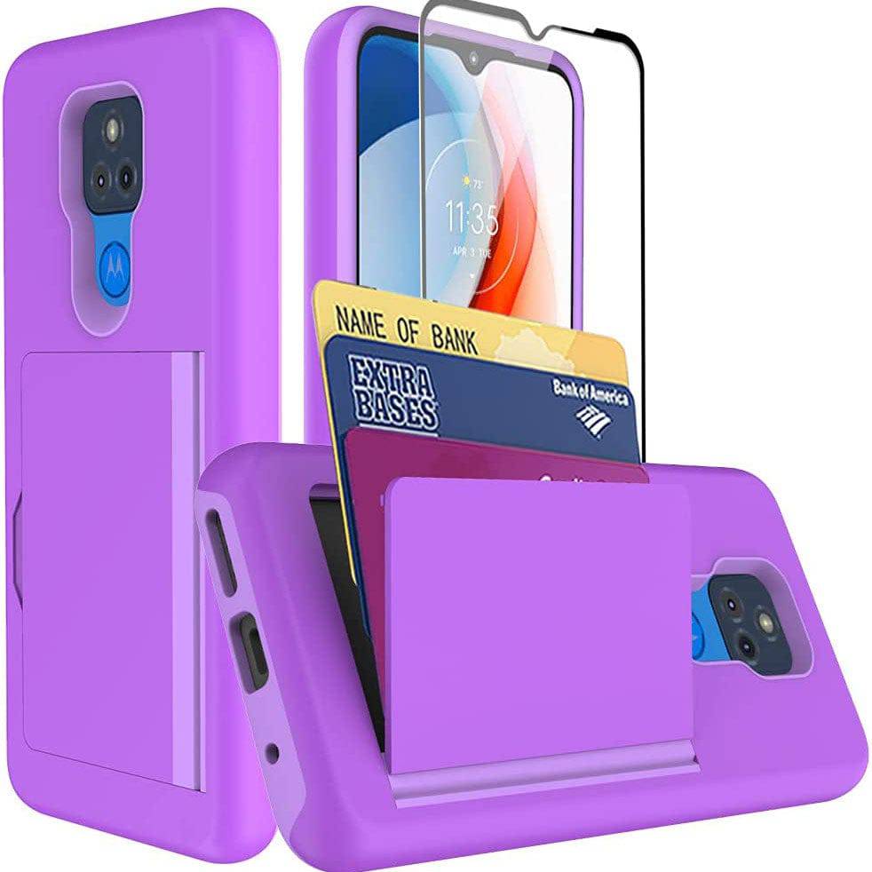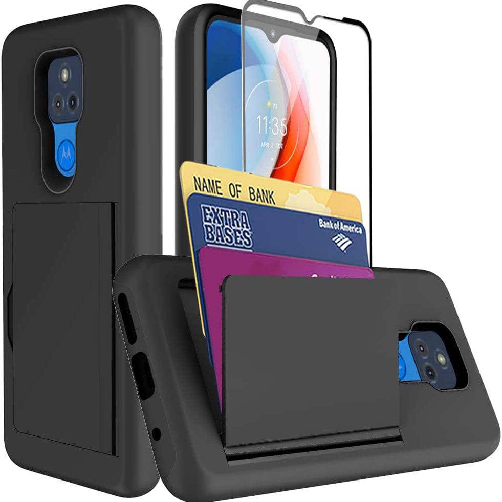 Armor Protective Card Holder Case for Moto G Play 2021 With Screen Protector