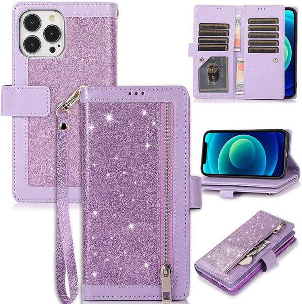 Bling Wallet Case with Wrist Strap for iPhone 13 Series