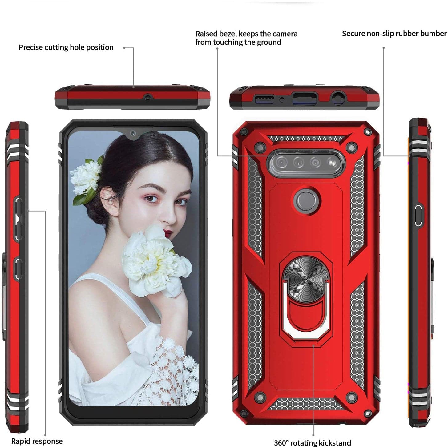 Luxury Armor Ring Bracket Phone Case For LG K51 With [2 Pack] Screen Protectors
