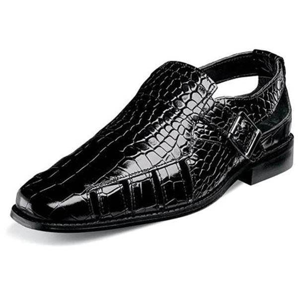 Men Casual Crocodile Print Leather Fisherman Sandals