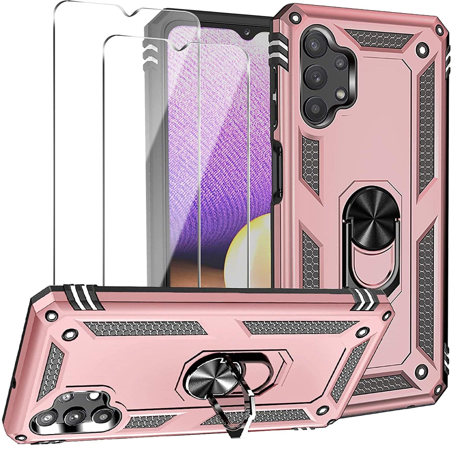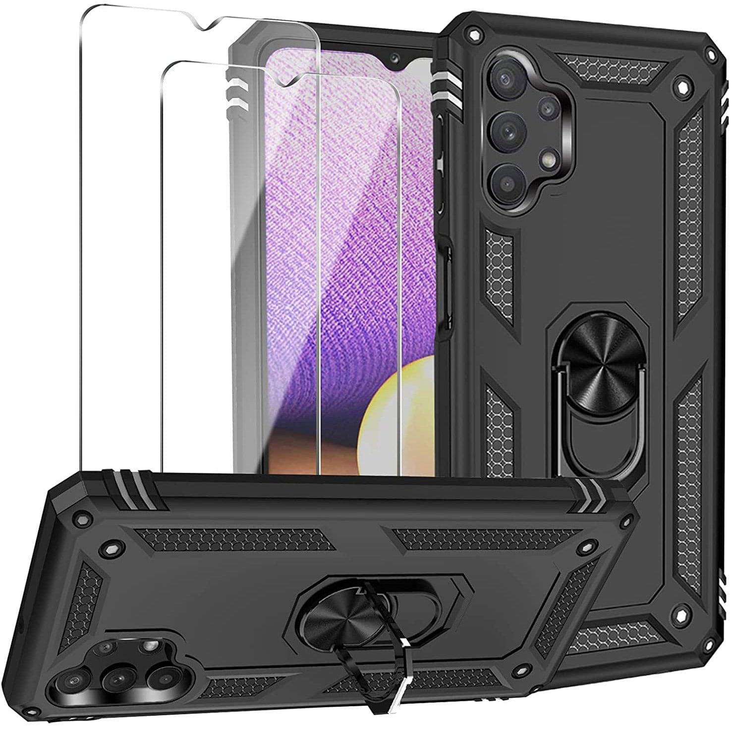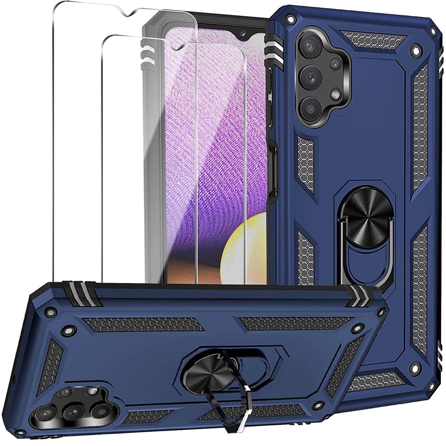 Samsung A32(5G) Luxury Armor Ring Bracket Phone Case With 2-Pack Screen Protectors