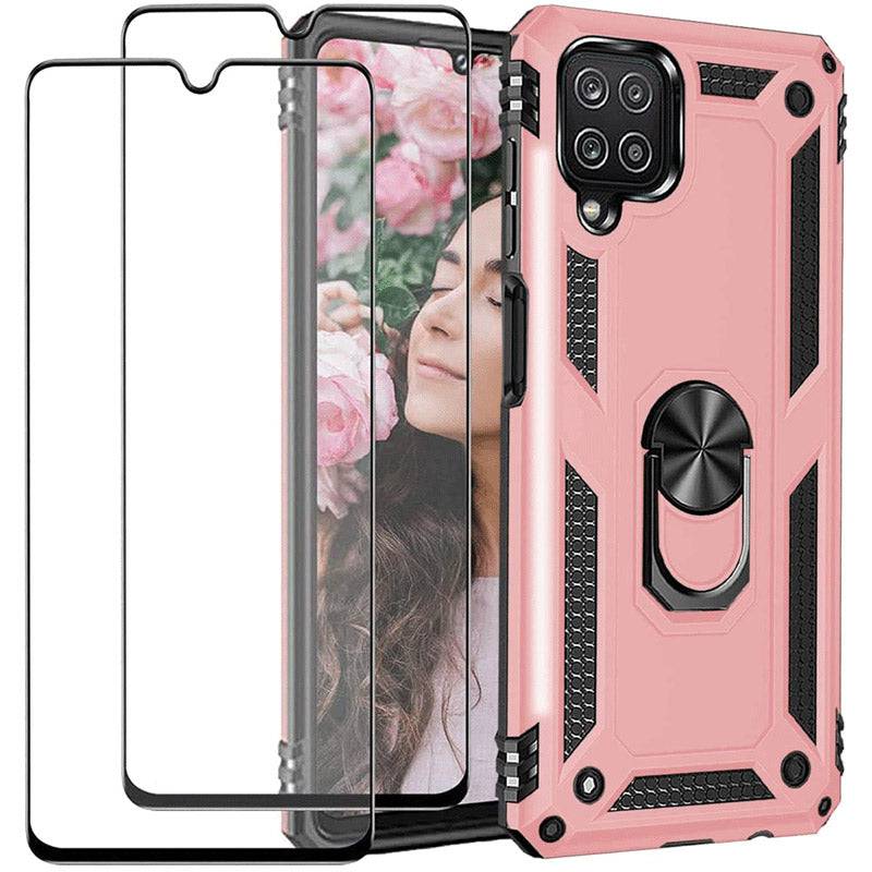 Samsung A42(5G) Luxury Armor Ring Bracket Phone Case With 2-Pack Tempered Glass Screen Protectors