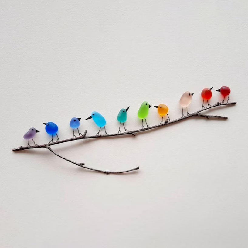 Artistic The colors of each bird are the most beautifully matched and will not disappoint. The legs of the birds are painted by the designer himself. The combination of real sea glass and the artist's meticulous craftsmanship creates a visually stunning and immersive experience for any viewer.