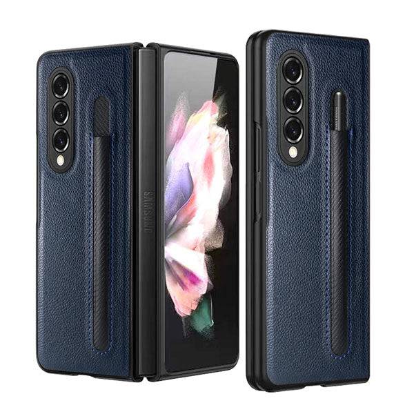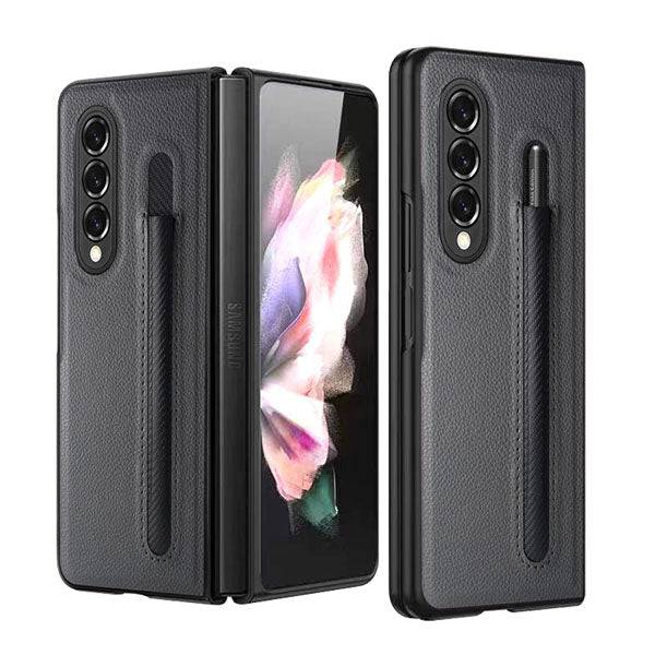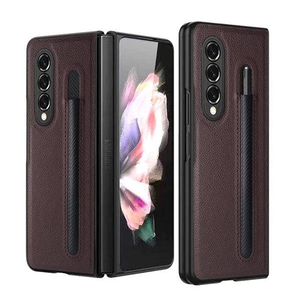 Capa de couro PU empresarial de luxo para Samsung Galaxy Z Fold 3 5G com suporte para caneta S
