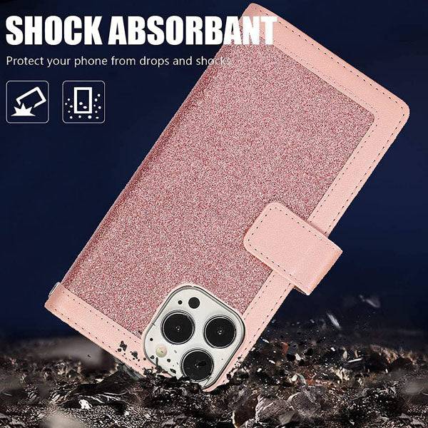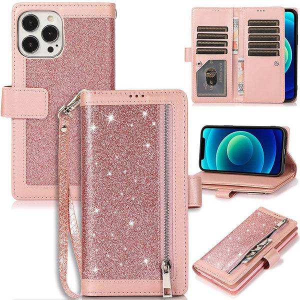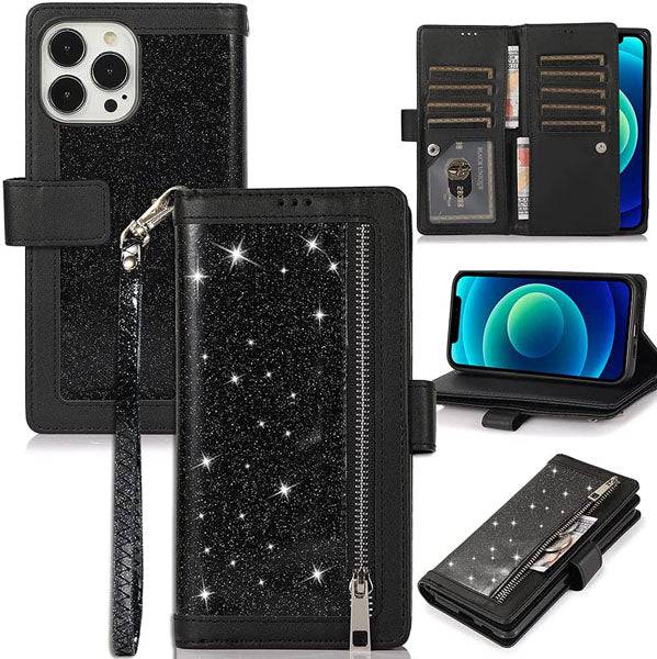 Bling Wallet Case with Wrist Strap for iPhone 13 Series