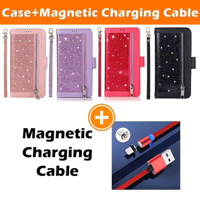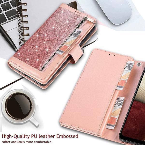 Bling Wallet Case with Wrist Strap for Samsung A12