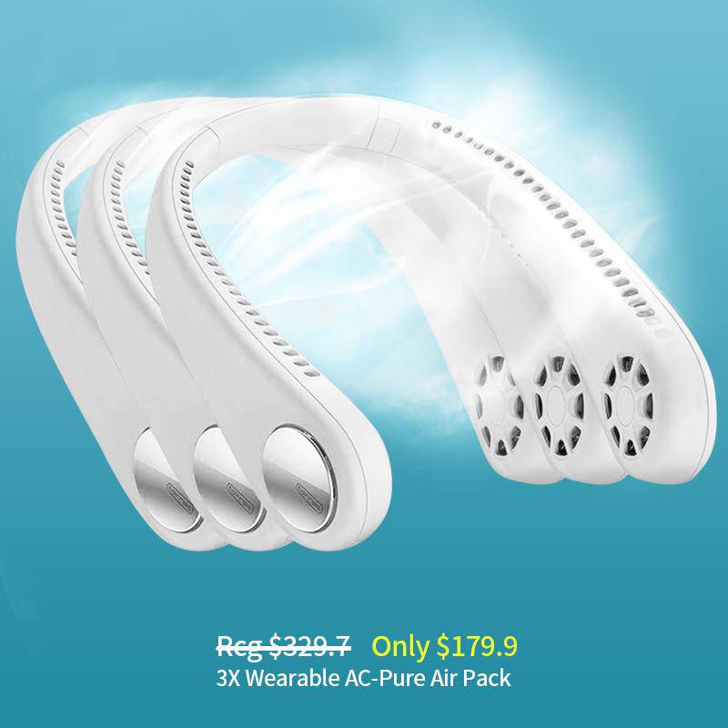 This Ultra Quiet Wearable AC cools and purifies the air around you while wearing around your neck. This lightweight, compact personal air conditioning unit plugs into USB port providing fresh, cool, comforting air indoors as well as outdoors.
