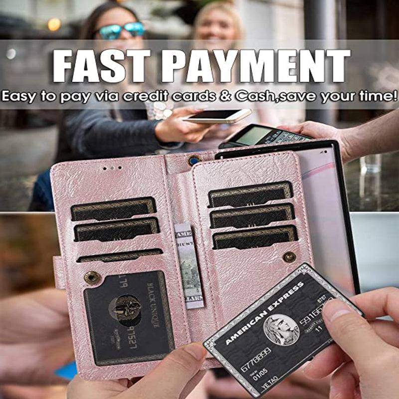 - WALLET AND ZIPPER DESIGN -- with card slots,money holder,zipper coin pocket.With plentys of space to your basic cards,notes and coins which makes payment convenient and fast. serves like a small clutch bag,perfect for shopping,party and travel.