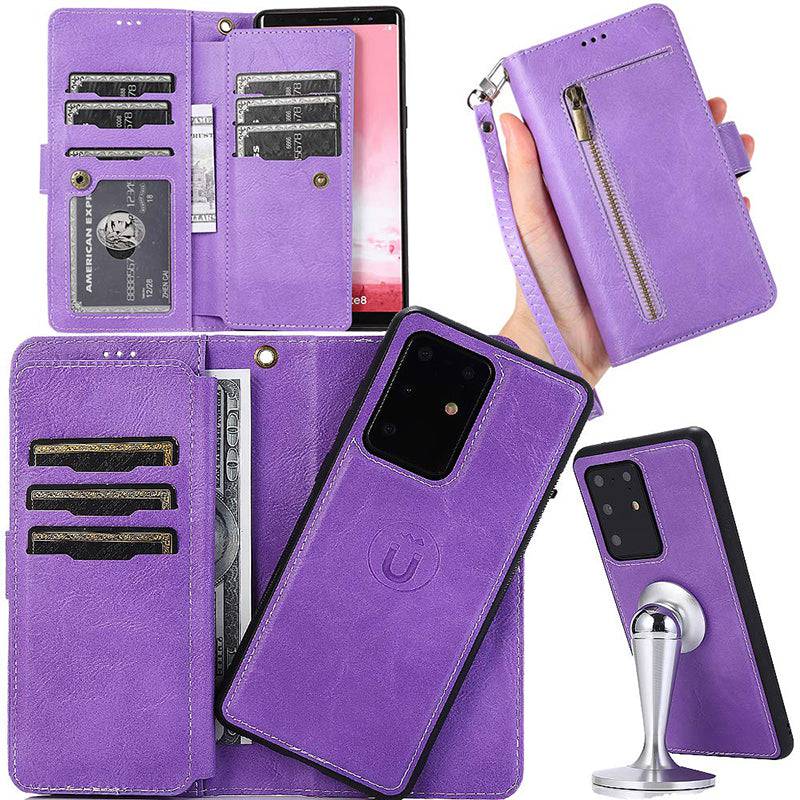 Detachable Flip Folio Zipper Purse Phone Case for Samsung