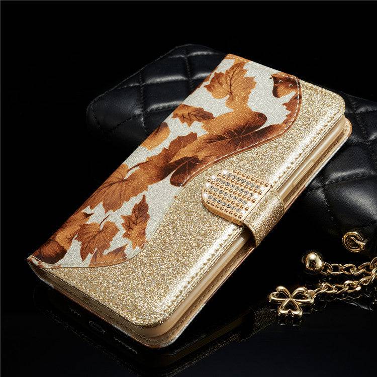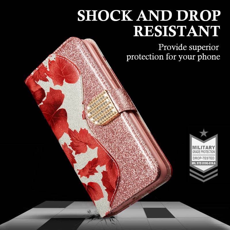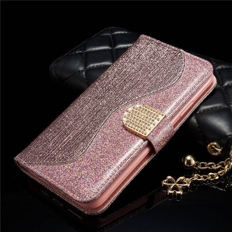Leather Glitter Rhinestone Flip Case For Samsung