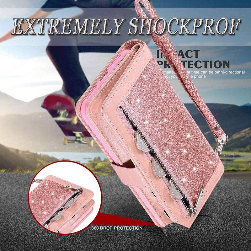 Bling Wallet Case with Wrist Strap for Samsung