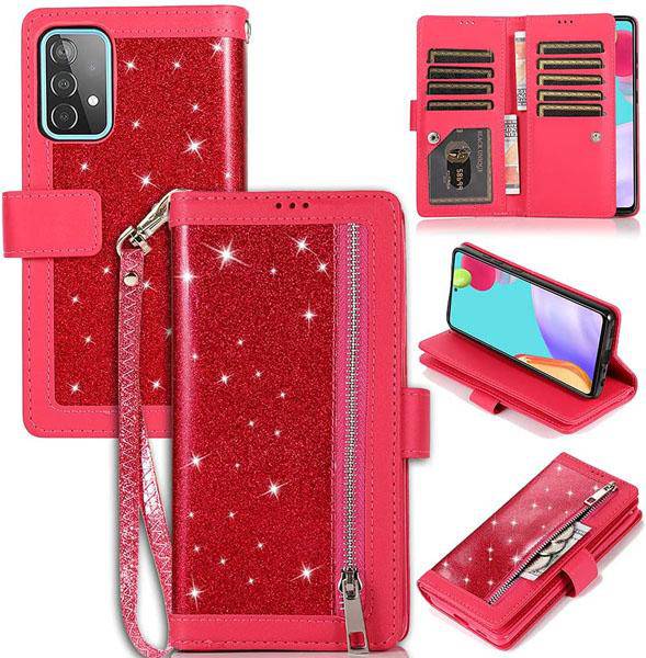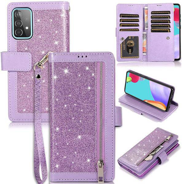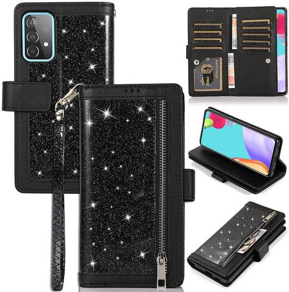 Bling Wallet Case with Wrist Strap for Samsung A52(4G/5G)