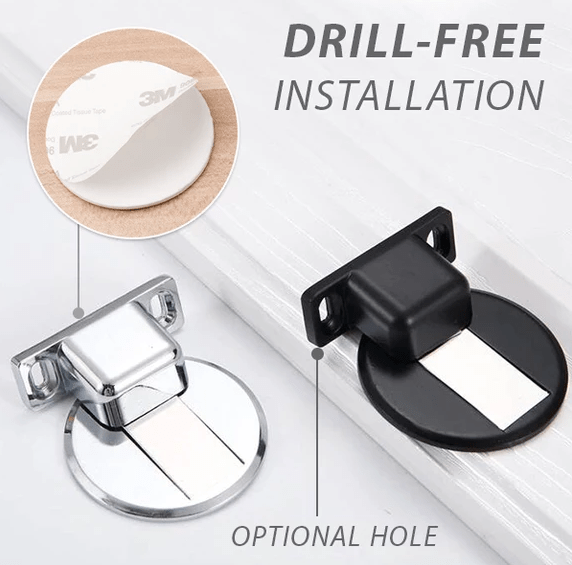 The Magnetic Stainless Steel Door Stopper is a small but powerful door stopper. With the strong adhesive magnet, it can hold the swinging door tightly to avoid any slamming or scratching to the furniture. It offers a drill-free installation.