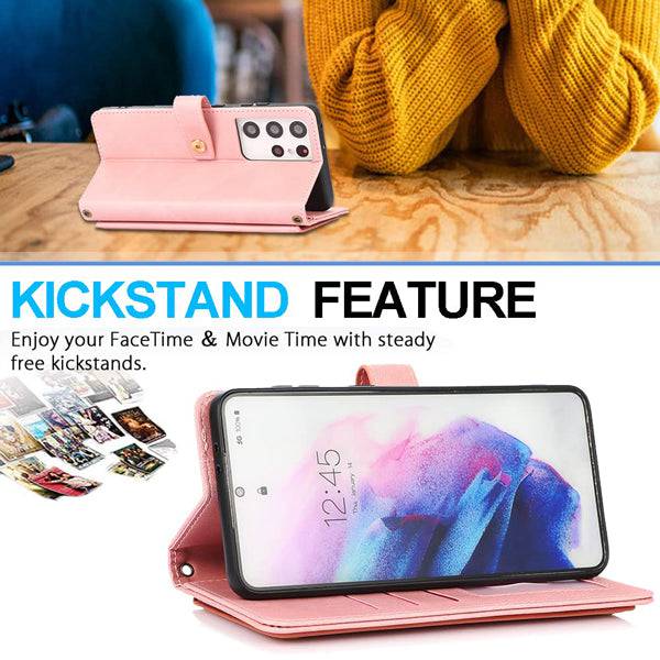 Leather Crossbody Shockproof Wallet Phone Case for Samsung S21 Ultra