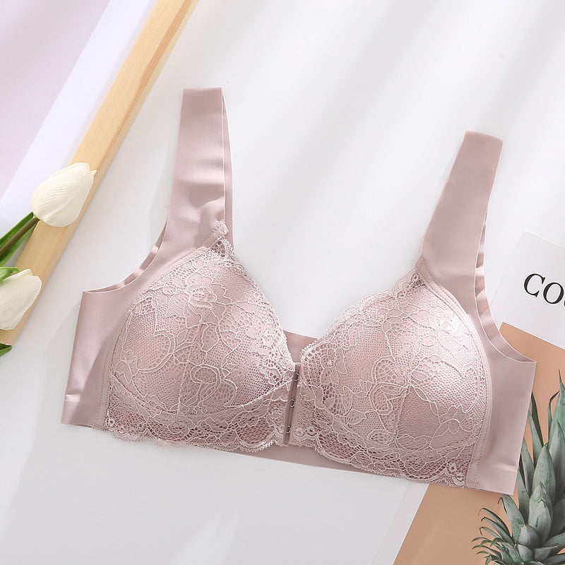 Women's Plus Size Lace Wide Straps Wireless Bra Front Closure Push Up Bras