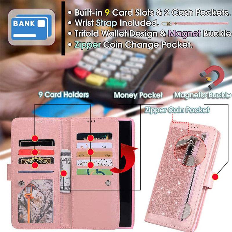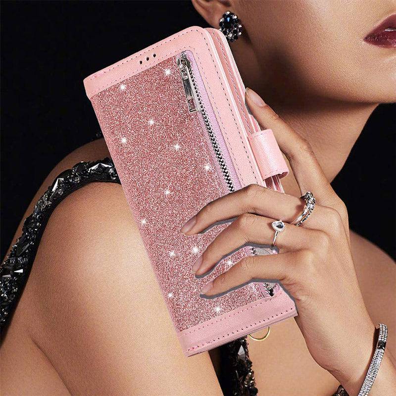 Bling Wallet Case with Wrist Strap for Samsung Note 20 Series