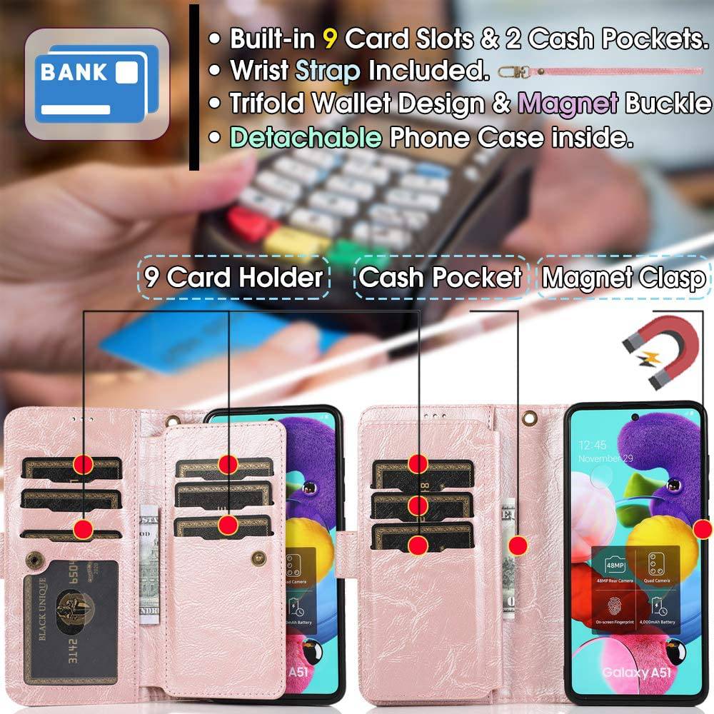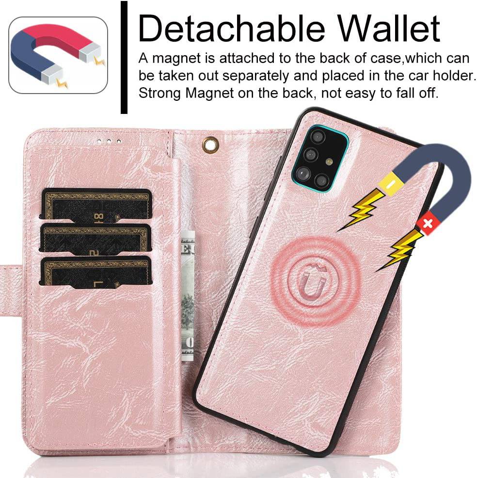 Detachable Flip Folio Zipper Purse Phone Case For Samsung A Series