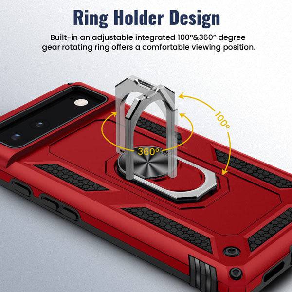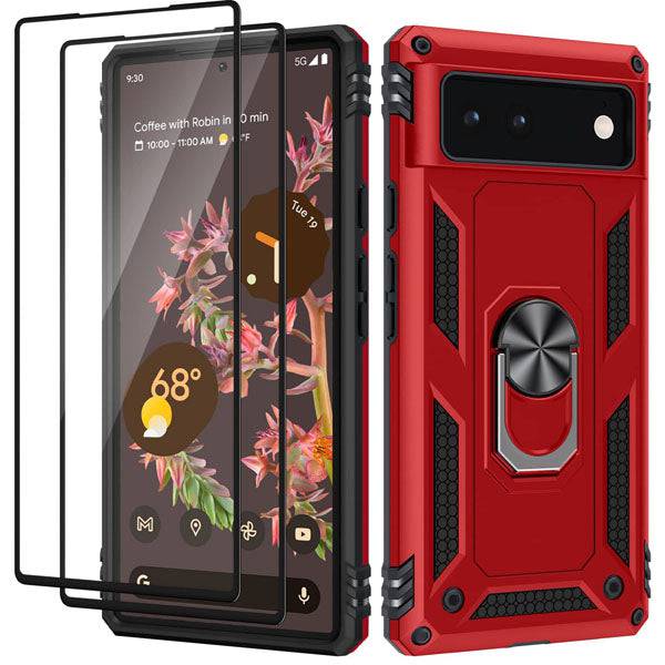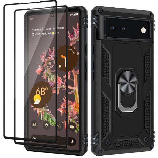 Luxury Armor Ring Bracket Phone case For Google Pixel 6 With 2-Pack Screen Protectors