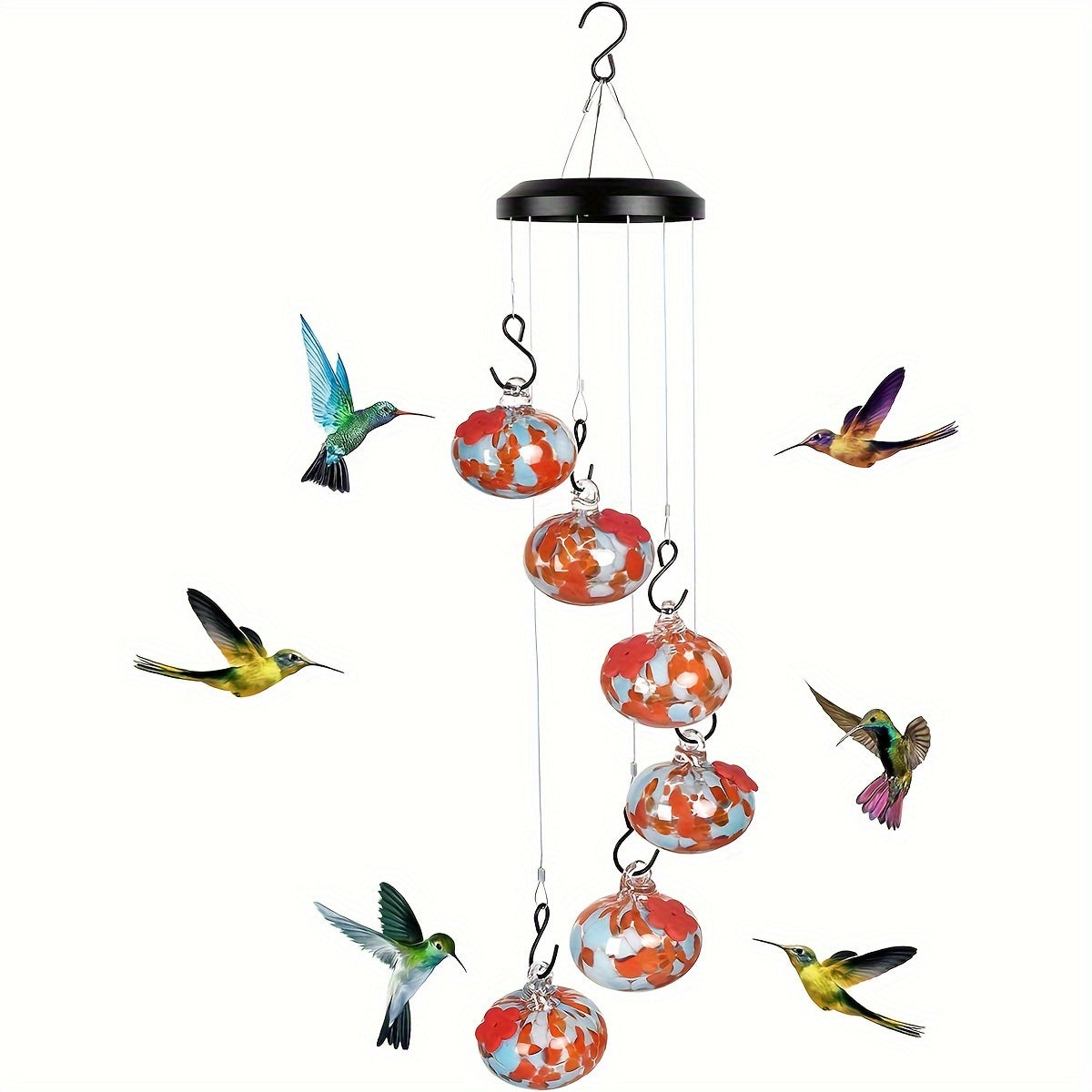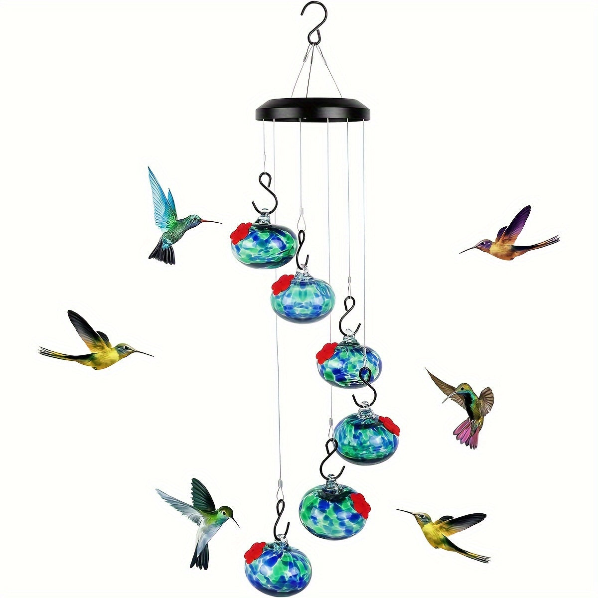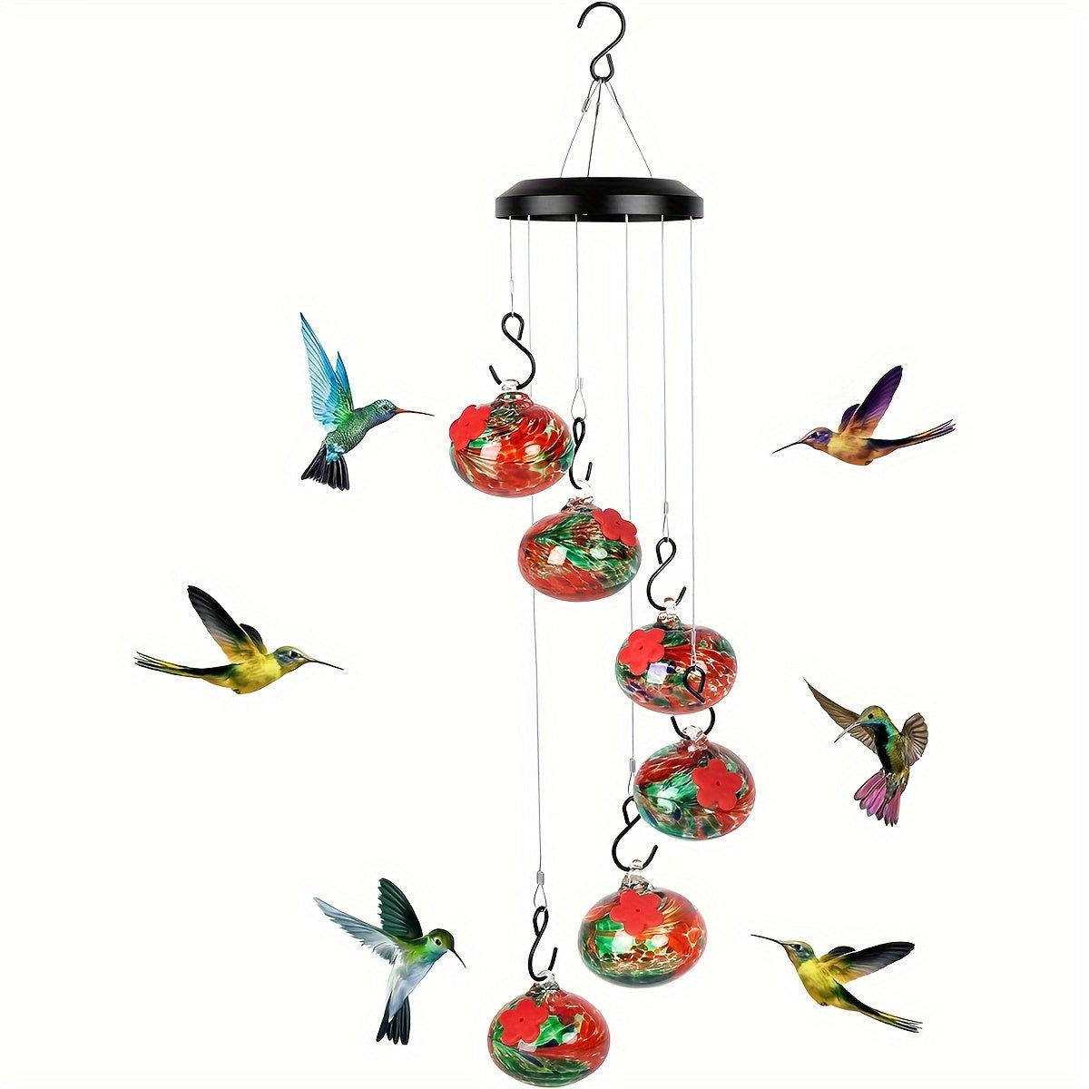 - 【Innovative Wind Chimes Feeder】 A creative blend of windchimes and humming birds feeders for outside, providing multiple feeding spots. A versatile addition to any indoor or outdoor space.