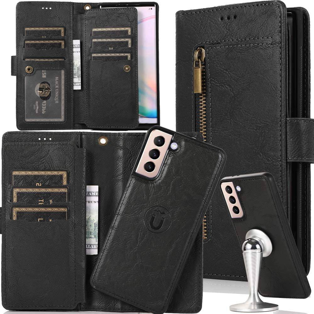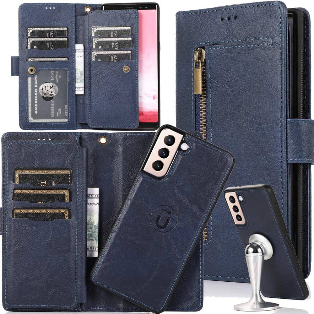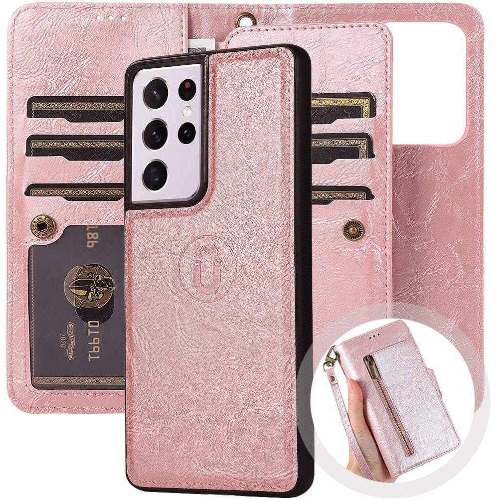 Capa de telefone com bolsa removível com zíper flip para Samsung S21 Series