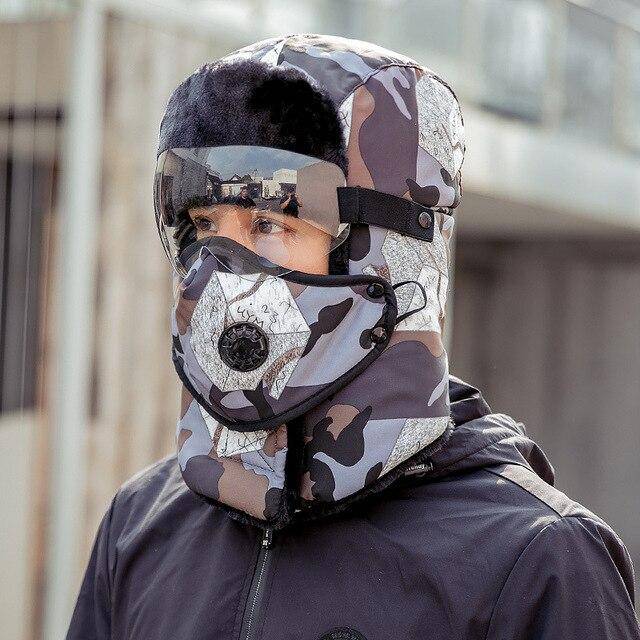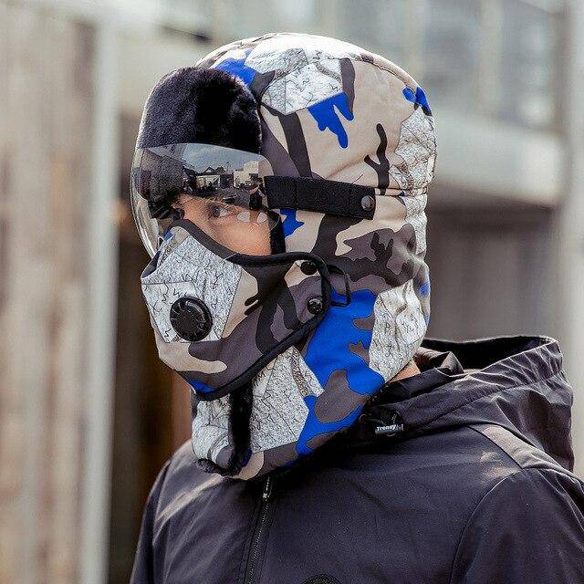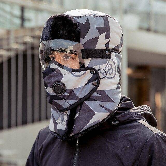 Chapéu quente de inverno unissex com máscara à prova de vento e óculos à prova de vento
